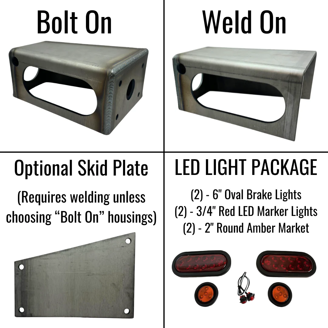 Our Heavy-Duty LED Trailer Tail Light Housing Kit is the most robust and only 3/16" steel kit available on the market. Built to endure extreme conditions, its rugged 3/16" steel construction makes it nearly indestructible, while the optional high-output LED lights deliver exceptional brightness and visibility. Designed as a direct replacement for damaged housings on Big Tex and similar trailers, this kit ensures long-lasting performance where durability matters most.